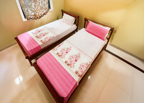 Sized at 13′ x 13′, this is the only room at Villa de Joseph with two single cots — ideal for friends or siblings traveling together. Located on the first floor with access to a shared balcony, Flamenco Beach offers a breezy, unplugged experience with WiFi and breakfast included.
